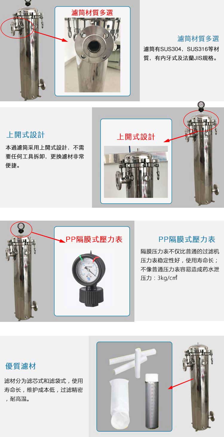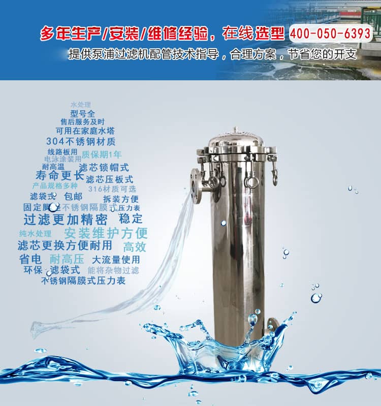 2.外殼進(jìn)出口與過濾系統(tǒng)管路相連,連接時(shí)注意方向,確保濾芯為外側(cè)進(jìn)水、內(nèi)側(cè)出水狀態(tài).