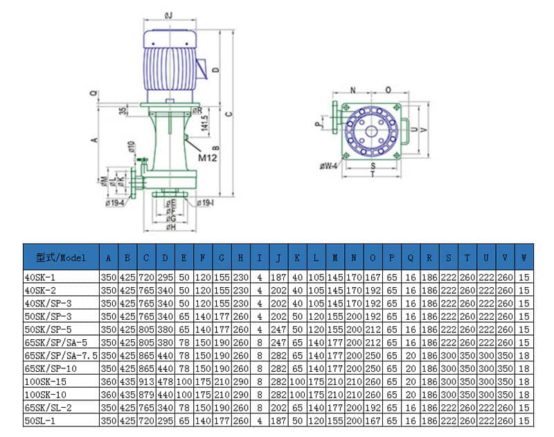 塑寶TD型耐酸堿立式泵型號安裝尺寸圖:
